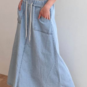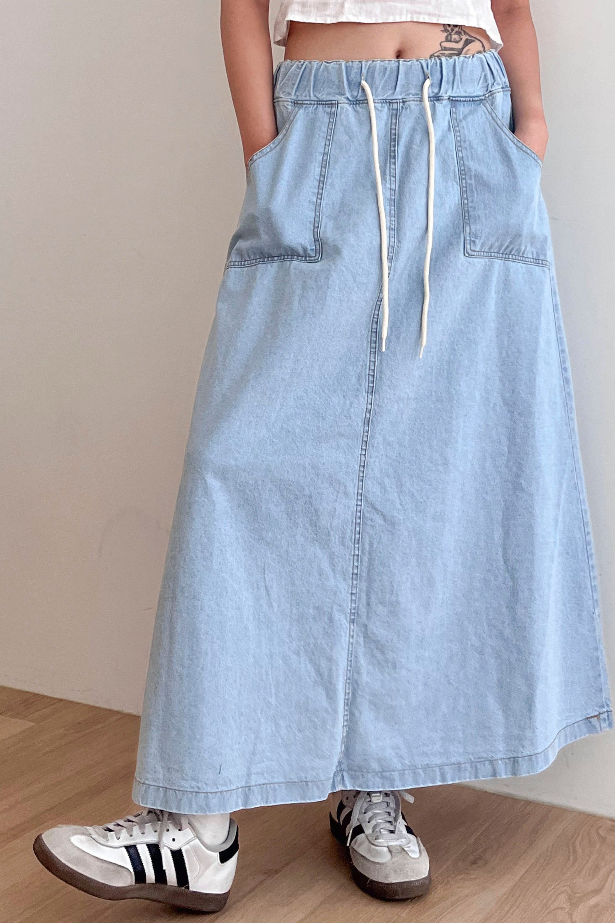 Layla Maxi Denim Skirt Pull on style Elastic banding on waist Drawstring tie Product Specification :100% Cotton Flat measurement : […]