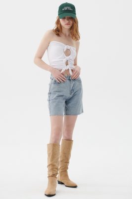 Luna Paperbag Denim Shorts Front zip fly Waist self-tie Loose fit Side cut out detail Raw edge hem Product Specification […]